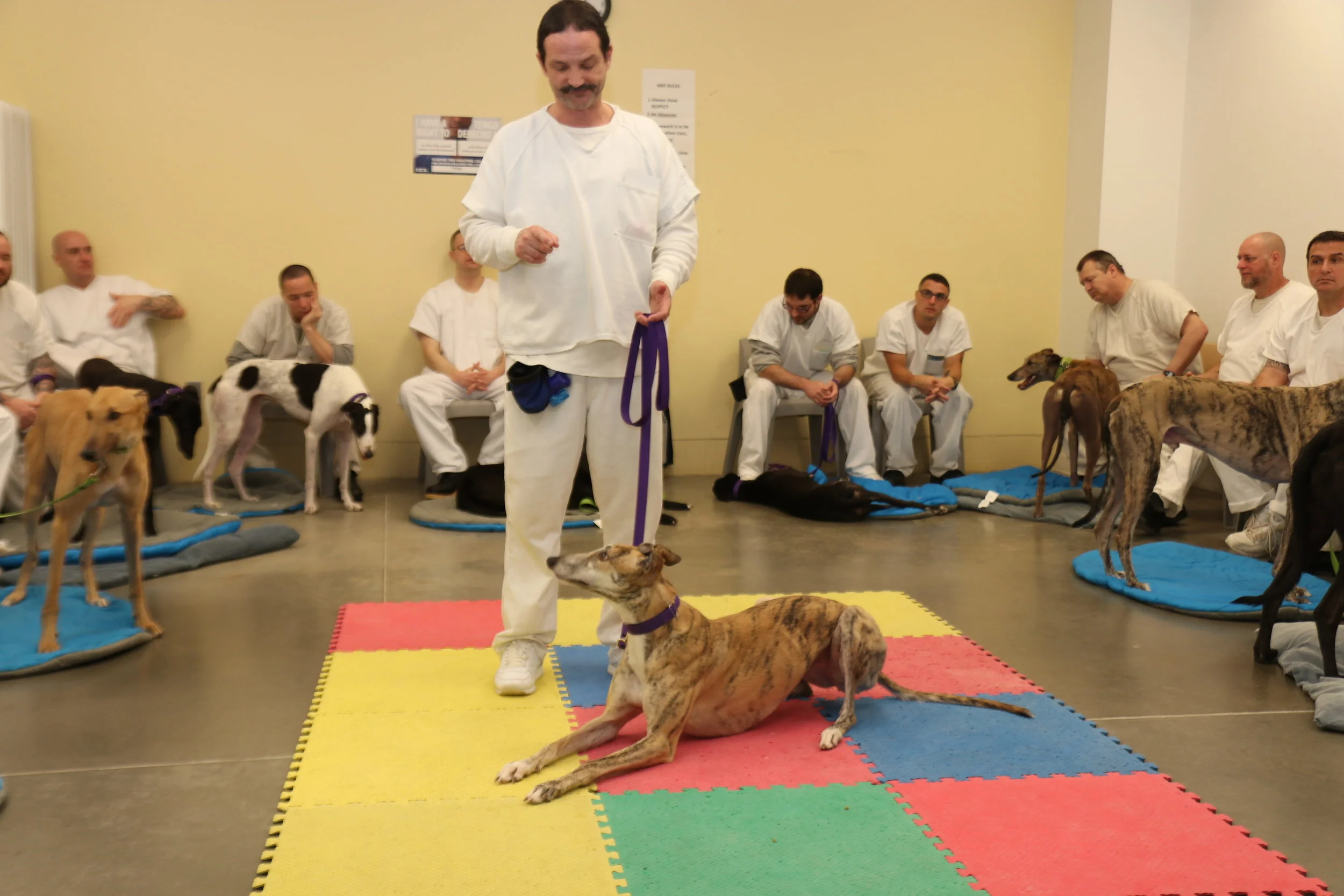 /Cali is improving every week. She is so smart, full of energy and loves to play. She always wants to go to the training room and play. Cali knows where the toys are kept and always looks in that direction and then to her inmate trainer, like "hey dude, are you going to get me one of those toys or not?" I'm waiting...