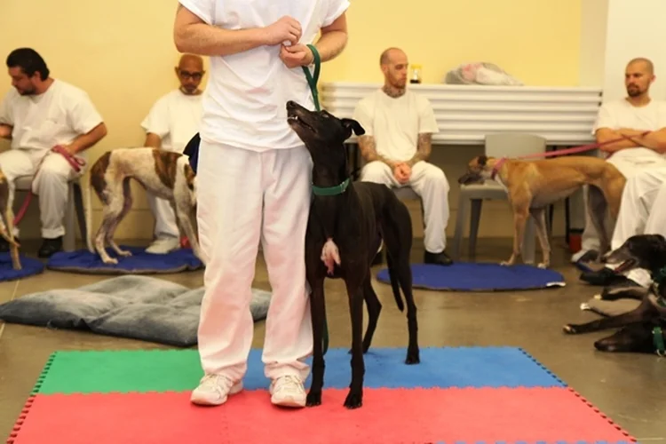 /Cutter has been doing great! His inmate trainer has fallen head over heels for this amazing boy! He says that Cutter is a great friend and wonderful companion. Cutter is showing great improvement with the stay and bed commands! He has no problems waiting at thresholds and meeting new people. He loves attention so his inmate trainer is introducing the command “show me love” and “visit.” His inmate trainer believes that Cutter will be sitting on his own very soon.