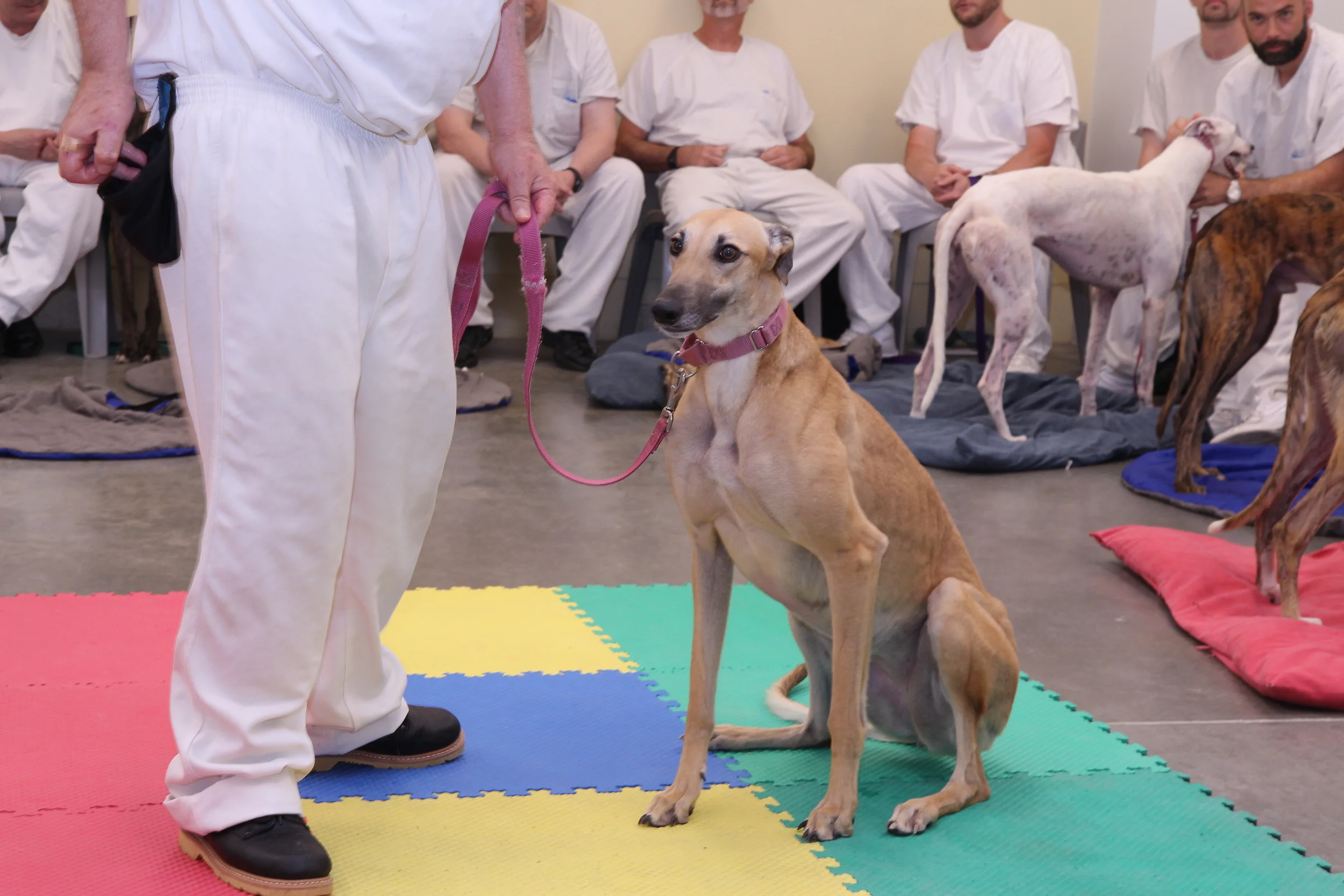 Riley is getting accustomed to a new inmate trainer this week and is doing very well. At first she was slow to respond but she just had to get to know her new leader. As each day passes, there is more and more progress. She knows all her basic commands including hurry, let's go, kennel, release, wait, here, heel, sit, down, stay, bed, and jump. They are now perfecting those commands and increasing Riley's response time as well as the length of time she remains in position for each of the commands.
