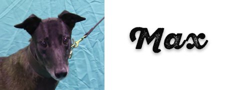 /Max is a calm, sweet-natured male Greyhound who’s ready to find a gentle, understanding forever home. Max has a quiet soul and can be a bit nervous in new environments or around new people. He may take a little time to come out of his shell, but once he does, you'll see a truly loving and loyal companion. Max enjoys quiet moments, gentle pats, and soft encouragement – and he’s slowly learning how fun toys can be! He’s not the boisterous type, but he’ll happily trot alongside you on a walk or curl up near you while you read or relax. Max would thrive in a peaceful home with patient adopters who can give him the time and space he needs to feel safe and confident.