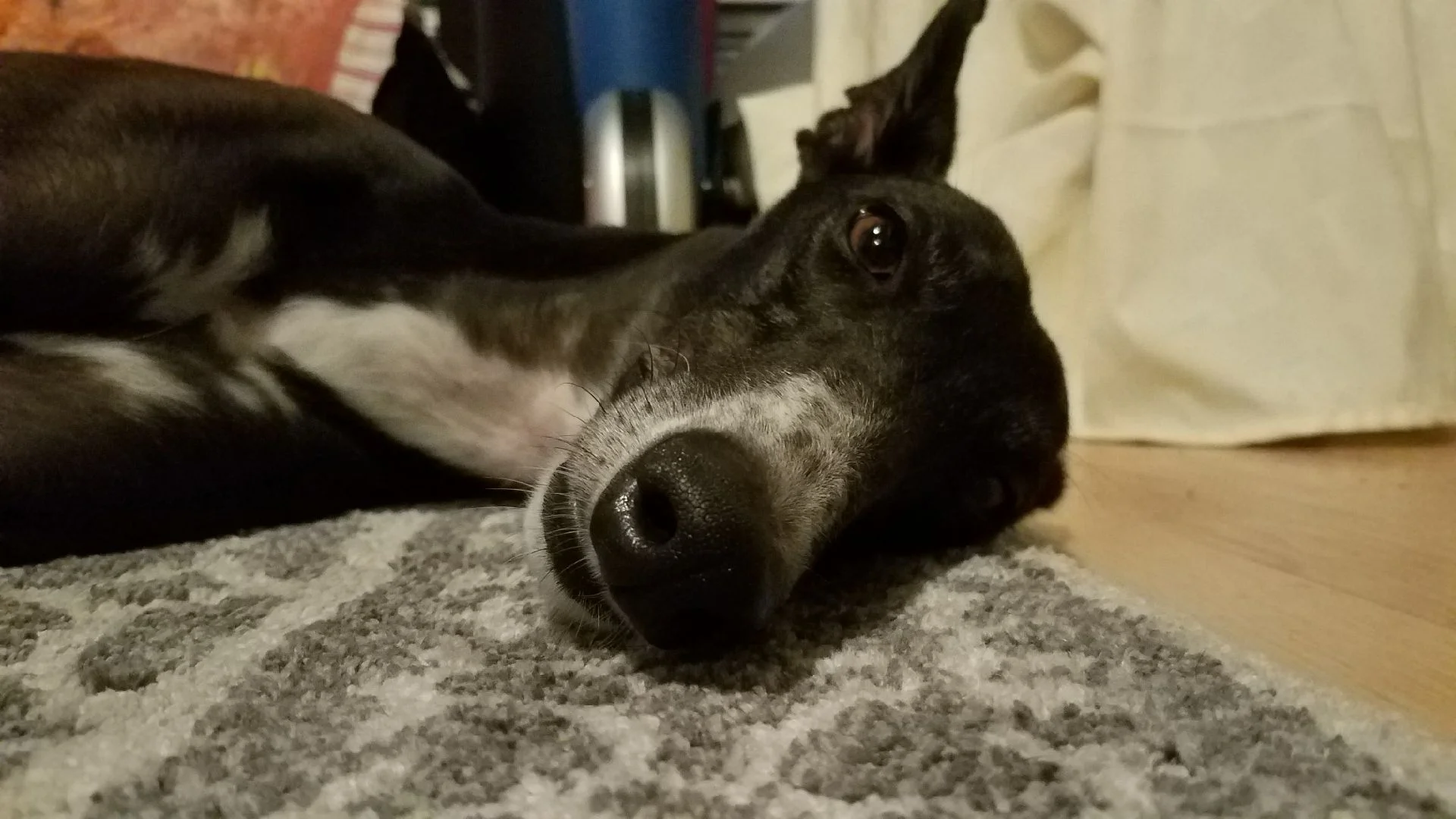 /Sweet Kayla continues to do well and thrive here with my pack. She loves the company of the other Greyhounds in the home and when she is outside, she'll just run and run around the backyard. She's quite happy but we all know this isn't her forever home. Just a temporary stop along the way.