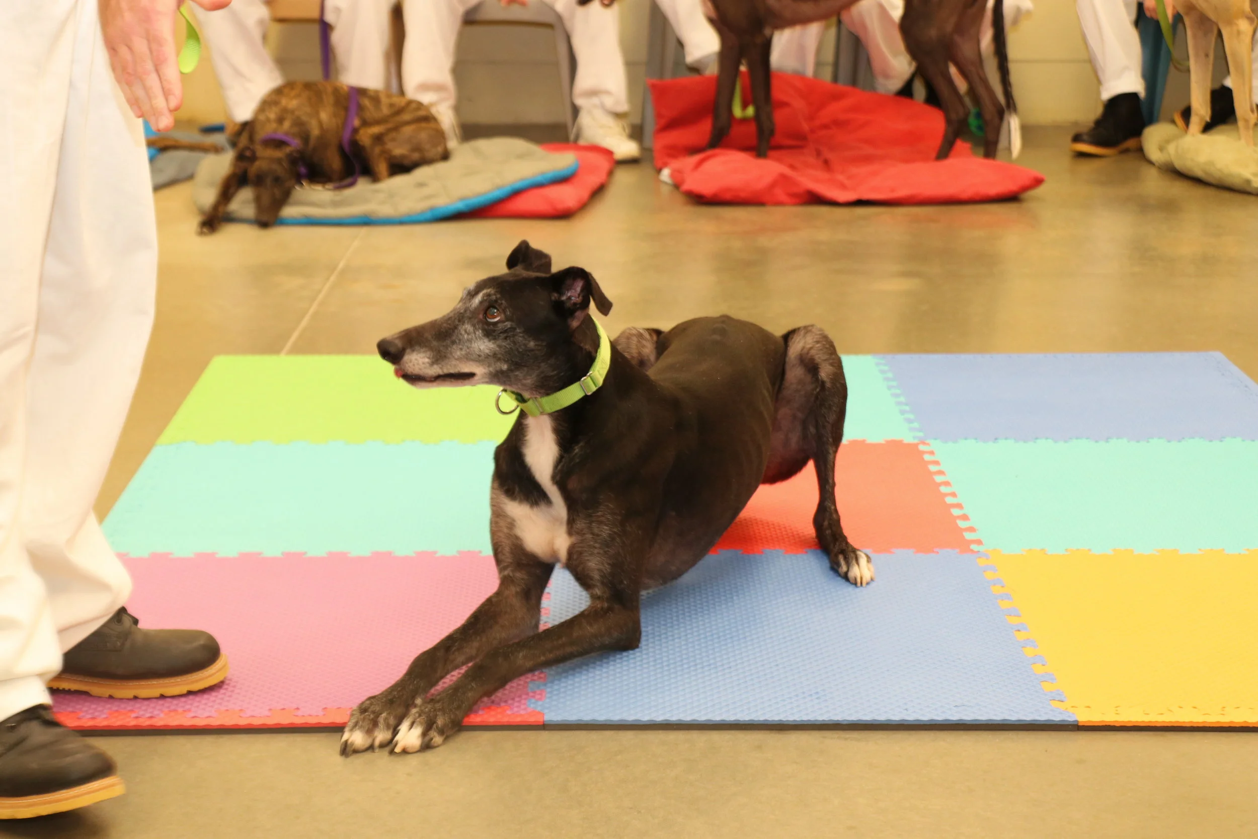Once again, Trax has had another productive week! He has greatly improved on his heel command, which is can be tough for greyhounds since they're sighthounds, and when they see something they want, boy can they go for it! But it's nothing that Trax can't handle. He's been polishing up his other basic commands, and has made massive strides with both duration and distance for the "stay" command. His trainer can walk behind him and out of sight and Trax stays This is yet another feat particularly for greyhounds, who are lovingly called Velcro dogs by many happy greyhound parents.
