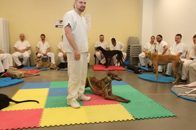 Chase loves to run on the big yard, and boy is he fast! His inmate trainer enjoys seeing him open up outside. He can't explain the grace and beauty when he's running. It's something you have to experience yourself.